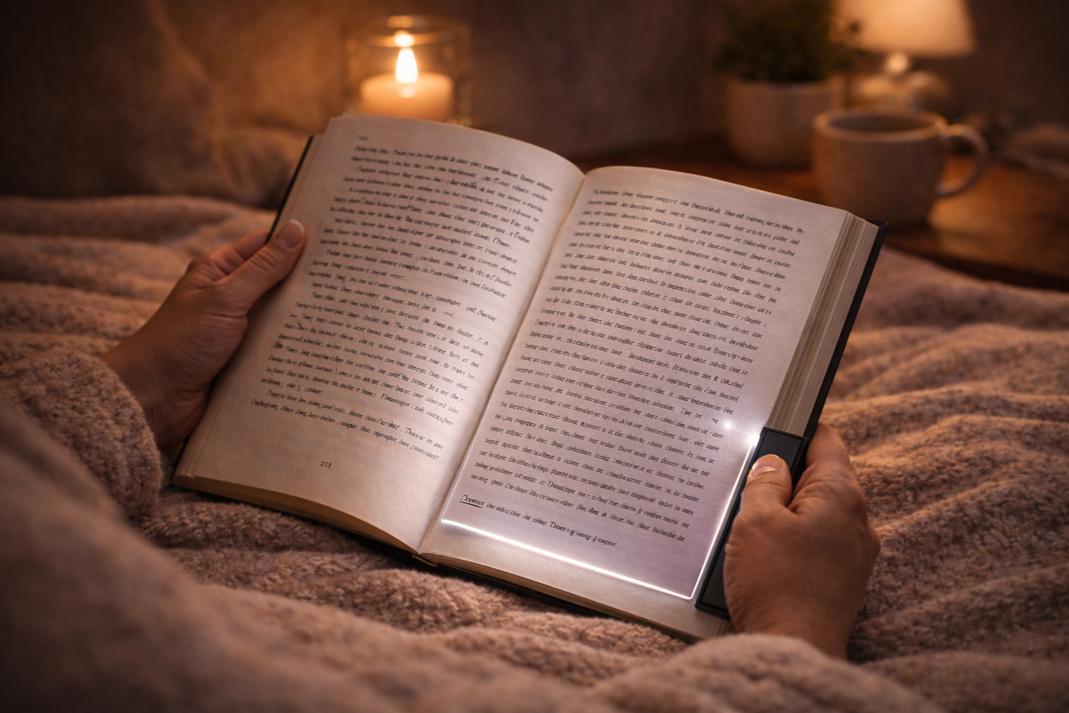 Soft, flicker free illumination designed to reduce eye strain and create a calm, comfortable reading experience day or night.